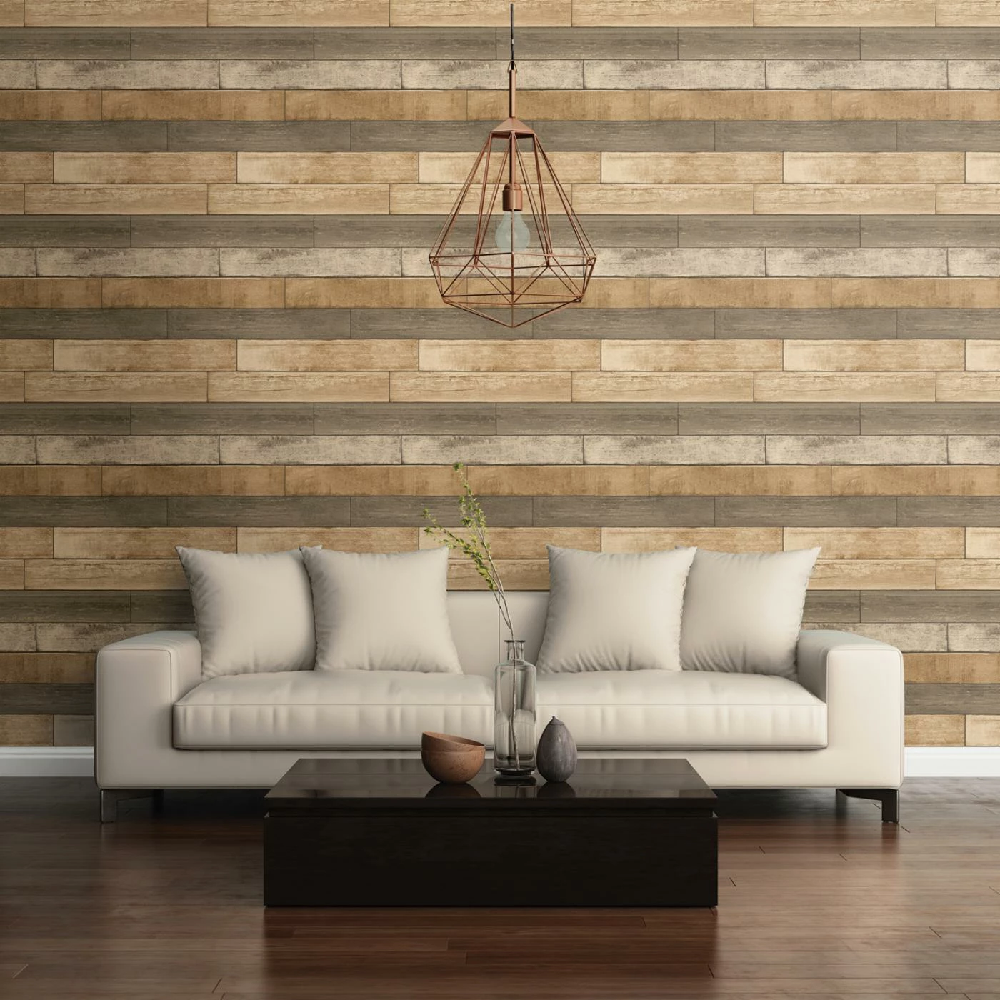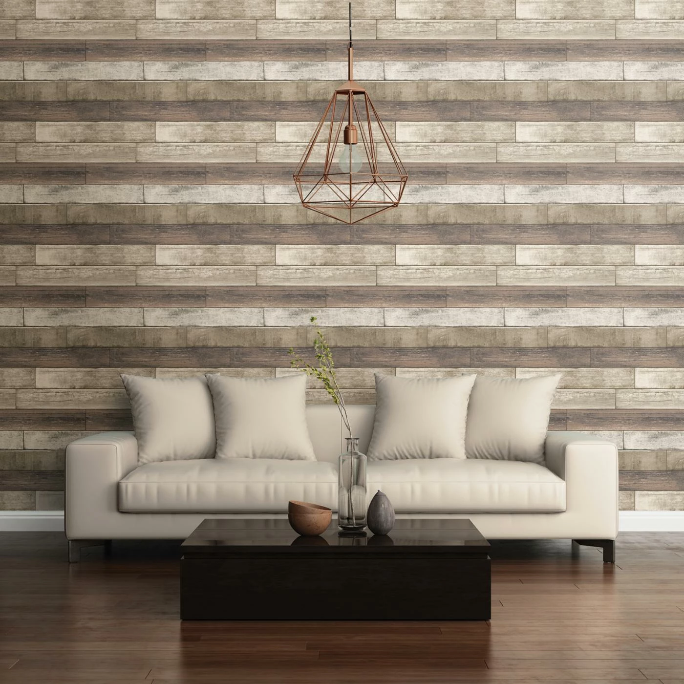 Create a statement wall or finish an entire room with rustic chic flair with the A-Street Prints Weathered Plank Wood Texture Wallpaper. With its rectangular blocks of distressed color, the faux wood grain wallpaper gives the look of a plank wall made with time-worn timbers. Non-woven and unpasted, the wallpaper is simple to mount and remove. It’s also washable for easy care.