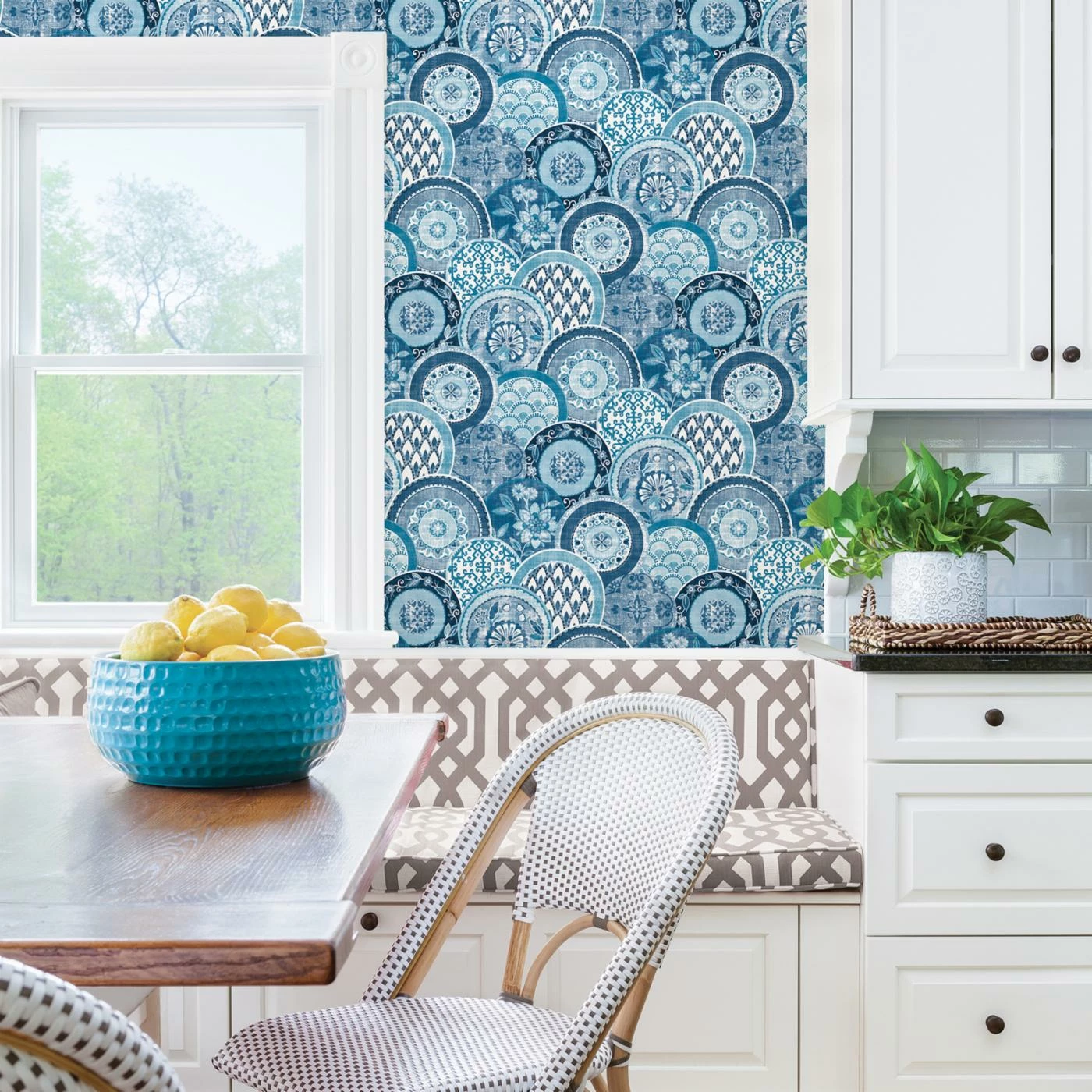Brighten your walls with this intricate and colorful A-Street Prints Laguna Plate Wallpaper. Each plate medallion features a unique print and this non-woven wallpaper comes in color palette options. One roll of this washable wallpaper covers about 56.4 square feet of wall space.