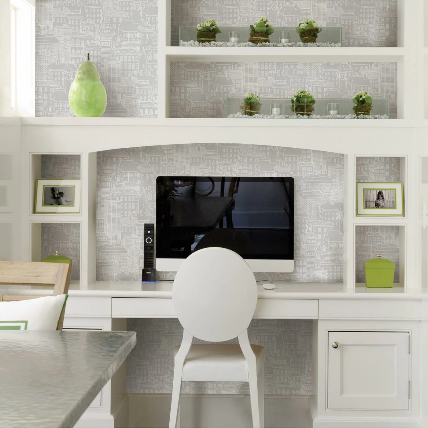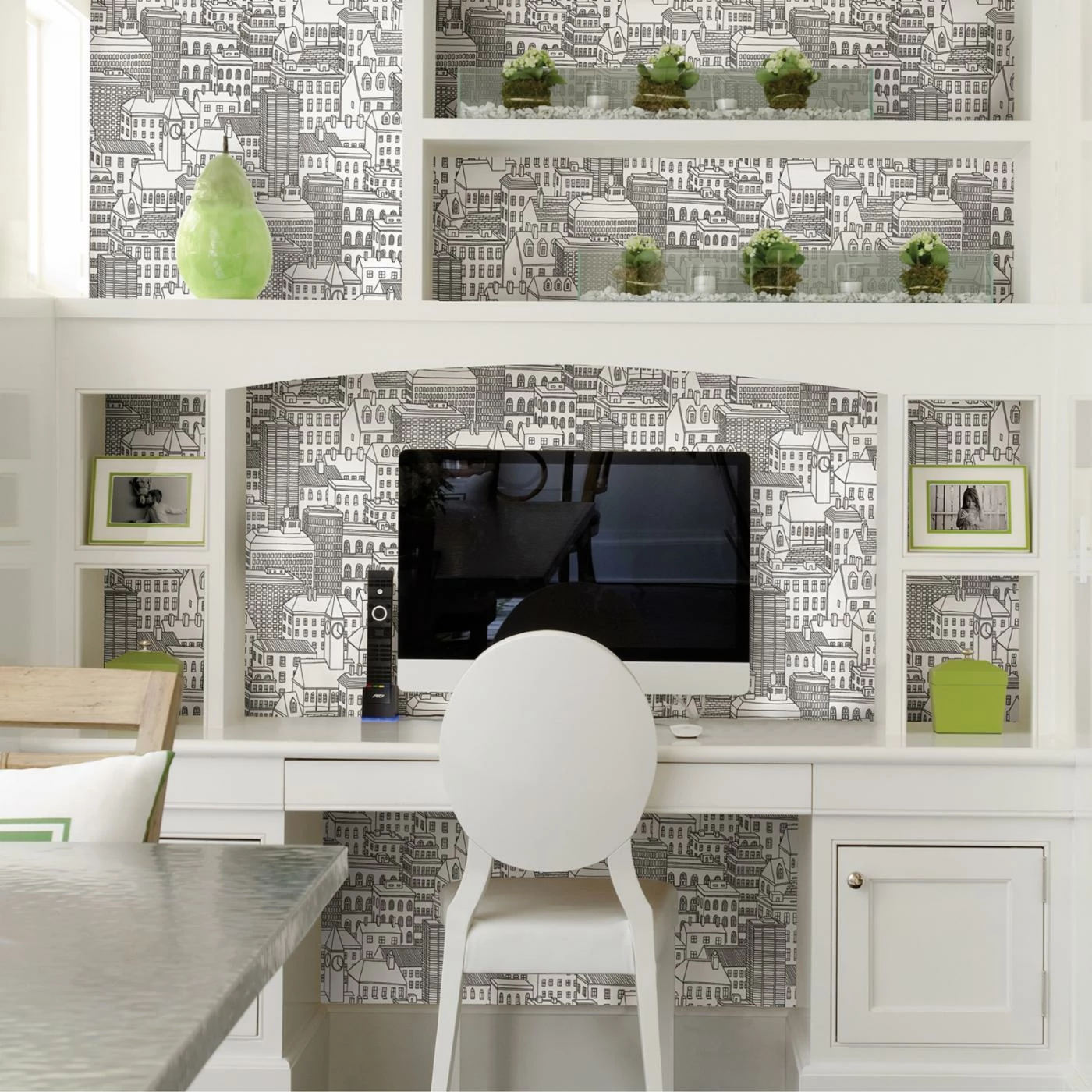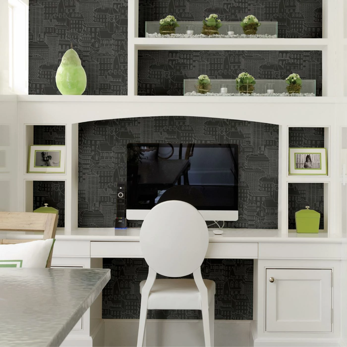The A-Street Prints Limelight City Wallpaper has an ultra-modern look in classic power colors with a creative depiction of skyscrapers, historic buildings, and clock towers. Each roll covers up to 56.4 square feet and has a simple paste application. This non-woven wallpaper is washable and features a repetitive pattern every 20.9 inches for easy matching.