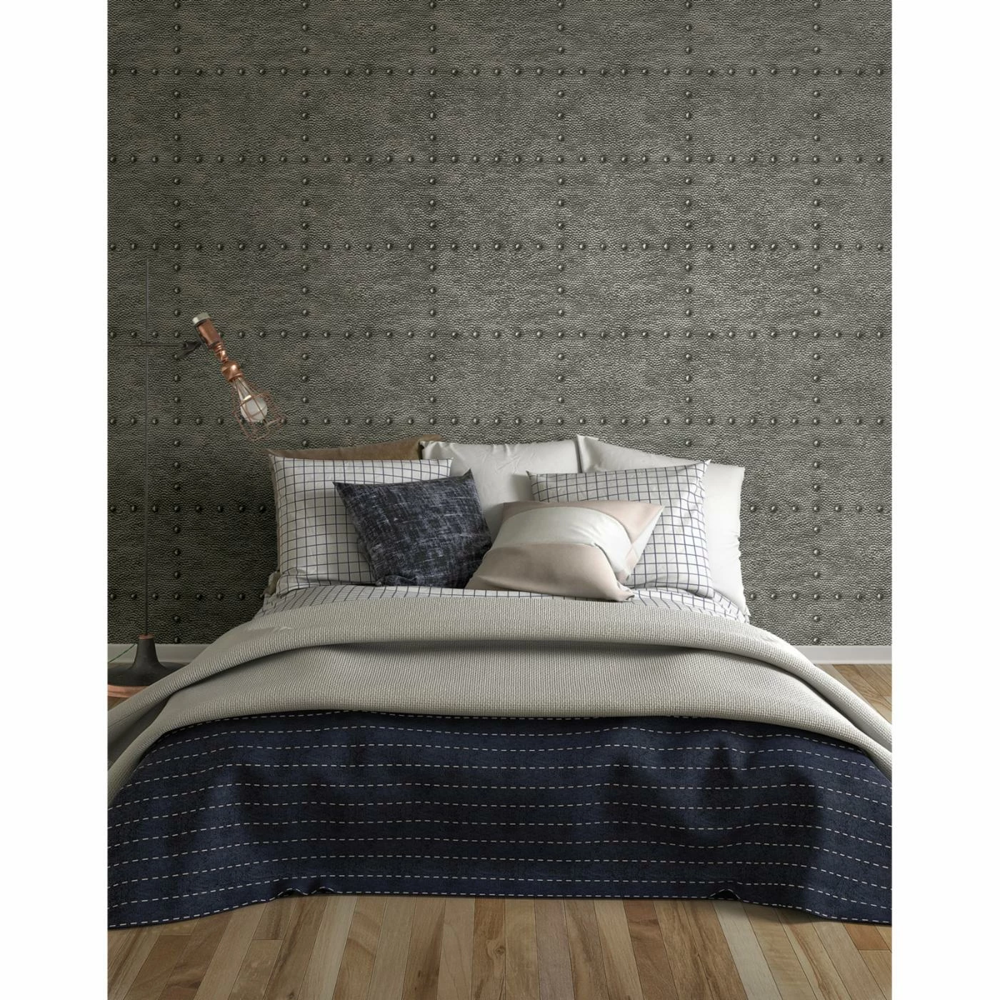 The A-Street Prints Otto Hammered Metal Wallpaper delivers an industrial look to your living space. Brilliantly modern, this unpasted wallpaper gives your wall the look of upcycled metal panels with faux hammered texture and rivets for a realistic silhouette. Easy to clean, it boasts an acrylic coating and is strippable when it is time to remove. Select from the available colors to best match your dรฉcor.