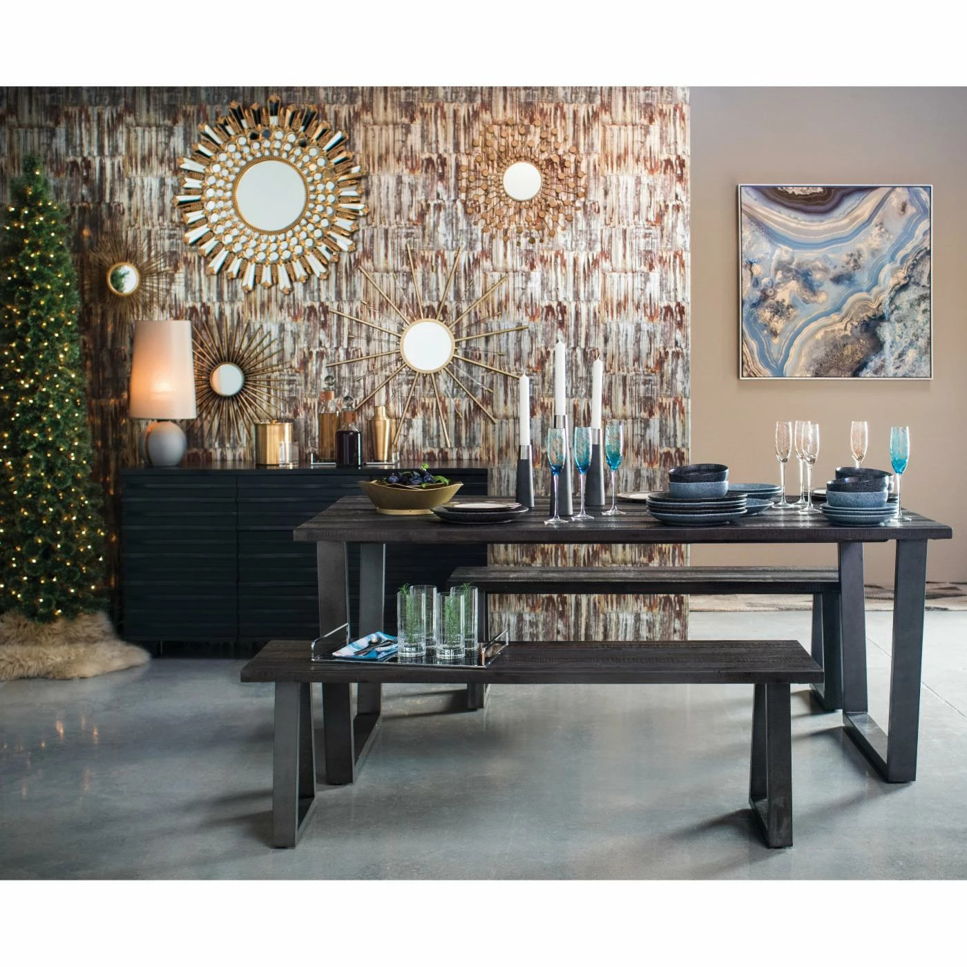 - Choose from available colors on faux reclaimed rusty metal print