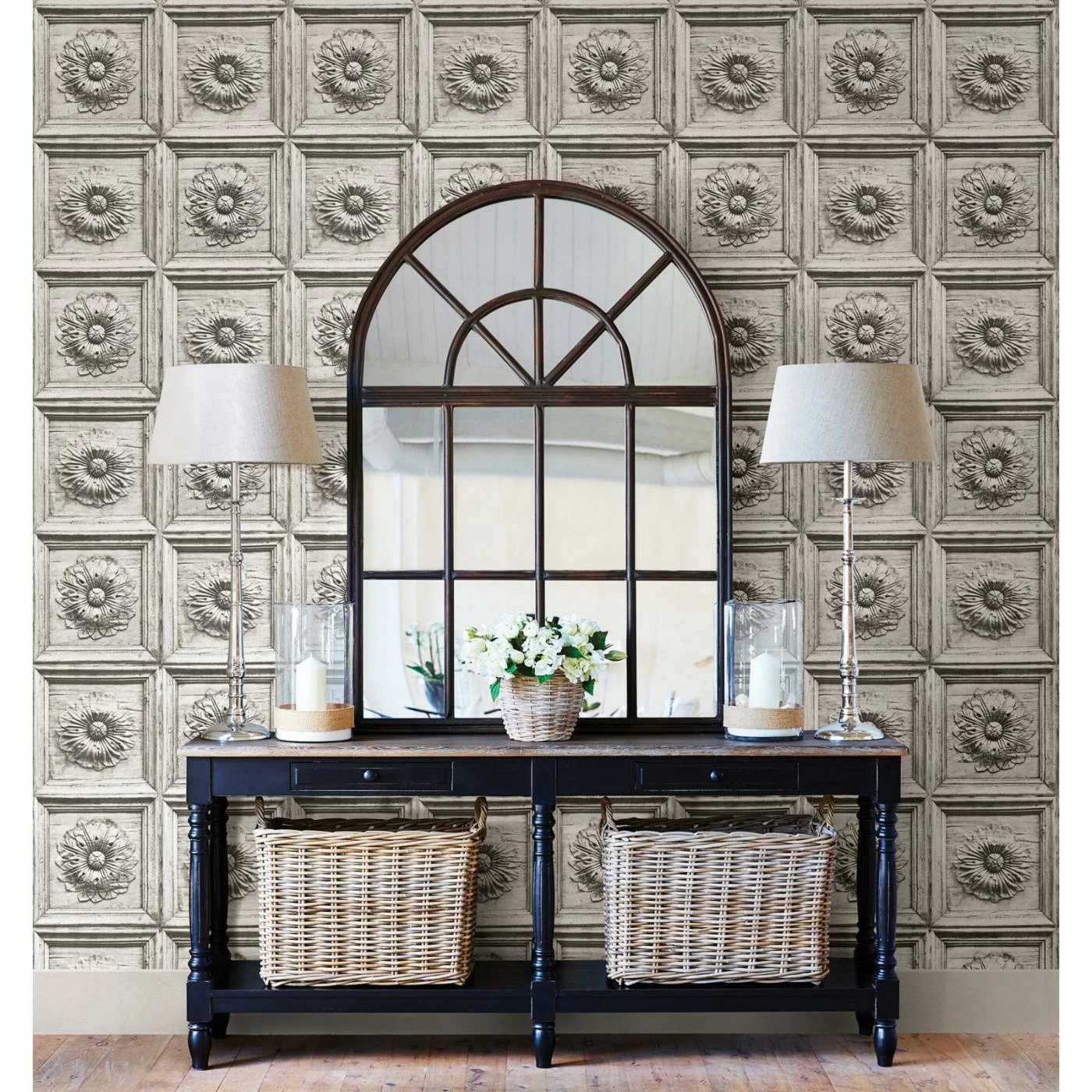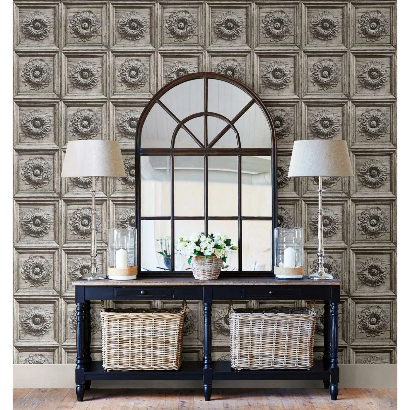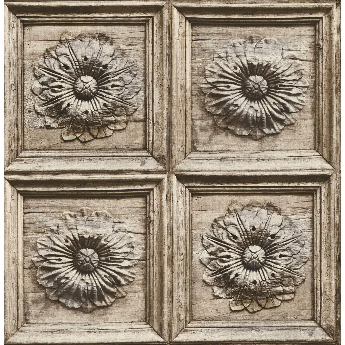 Deliver a rustic, dimensional effect to your walls with the A-Street Prints Ravenswood Wood Panel Wallpaper. This wallpaper features a weathered pattern of hand-carved, floral medallion wooden panels for a vintage flair. It arrives unpasted and coated in acrylic for an easy-to-clean surface.