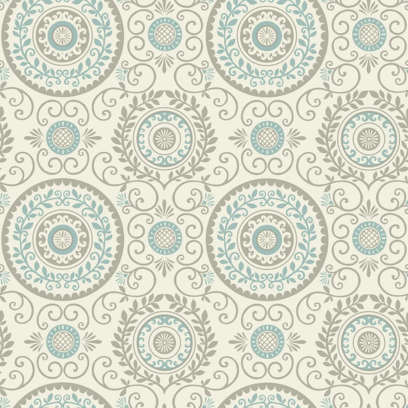 Give any space some boho-chic style with the Brewster Annabel Aqua Medallion Wallpaper, highlighted with decorative floral medallions and vines. Soft shades of gray and turquoise stand out against the crisp white background. Its charming design makes it a chic choice to bring a subtly ornate look to the walls of any room.