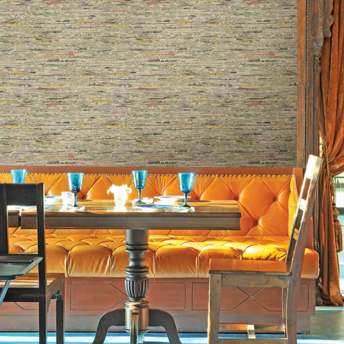 - Woven newspaper print wallpaper available in multi-colors