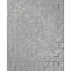 Off-kilter squares give the Brewster Dagmar Silver Medium Squares Wallpaper a modern take on the classic grid pattern. This bold, unique wallpaper is created with dark charcoal gray blocks on a sleek metallic background. Each square is covered in raised inks to give your walls a mottled texture.
