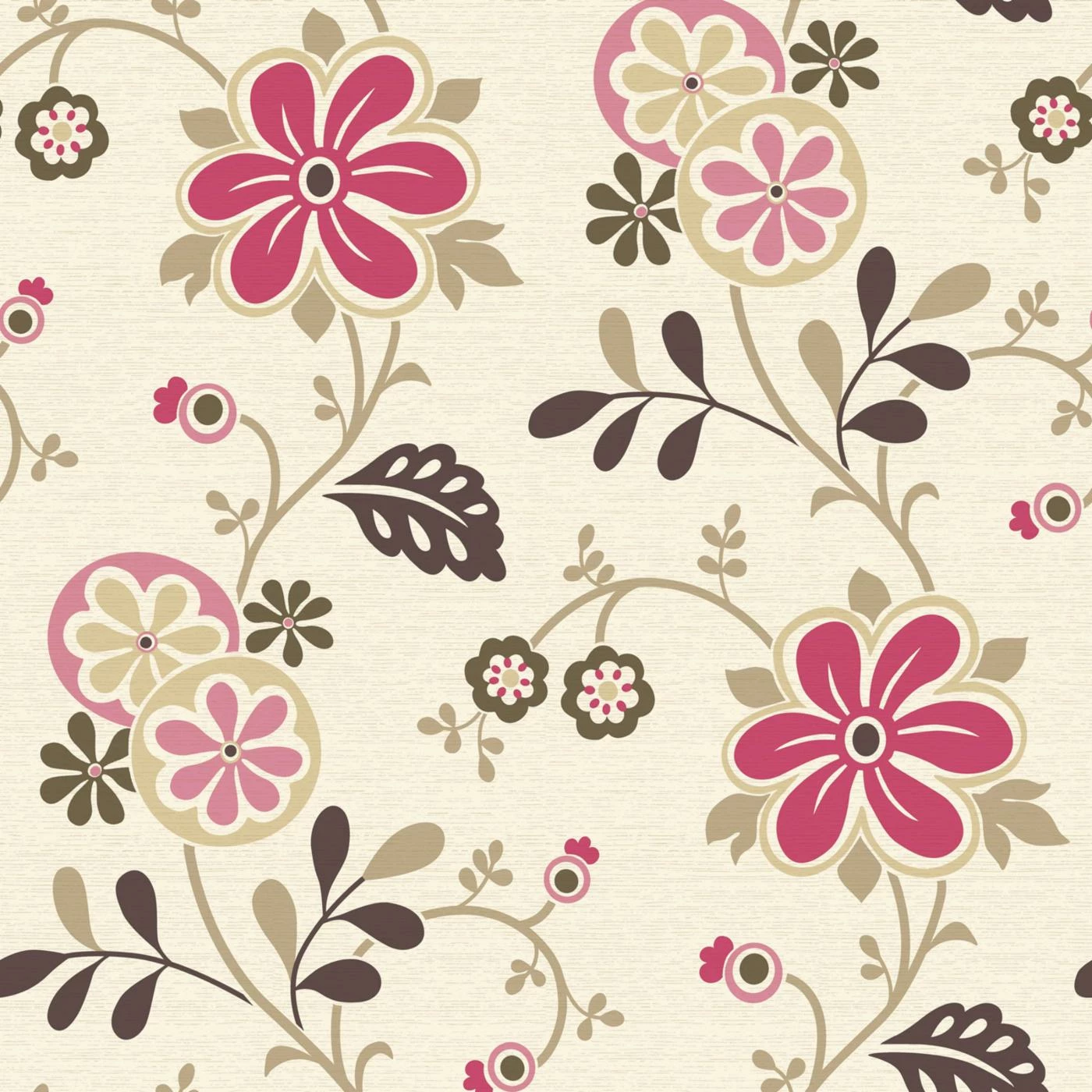 A brown and pink color scheme lends earthy elegance to the Brewster Darlene Modern Floral Trail Wallpaper. This wallpaper is crafted of non-woven material that’s washable for easy, hassle-free cleaning. The pattern repeats at 21-inch intervals with a straight-match application.