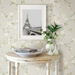 Let Brewster Delphine Floral Trail Wallpaper enhance the atmosphere in your home with its handpainted finish, white blossoms, and glistening gray background. This tasteful wallpaper is equally practical with a washable surface and covers 56.4 square feet per roll. The pattern repeats every 21 inches, lending sophisticated elegance to your living space.