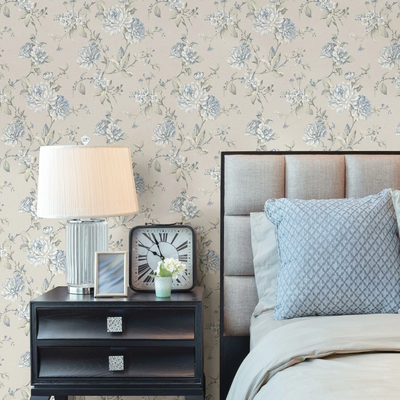 Durable and delightful, the Brewster Essentials Mandir Floral Trails Wallpaper is an easy and effective way to spruce up any room. The paper has an intricate floral pattern with your choice of available color. Made from non-woven materials, the paper is washable and features a non-pasted backing.