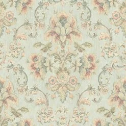 Transform any room into a sophisticate escape with the Brewster Essentials Mysore Damask Wallpaper. This wallpaper features a classical floral damask design in green with orange tints. The paper is made from non-woven materials, so itβs long-lasting and washable. A non-pasted design allows you to use the adhesive of your choice.