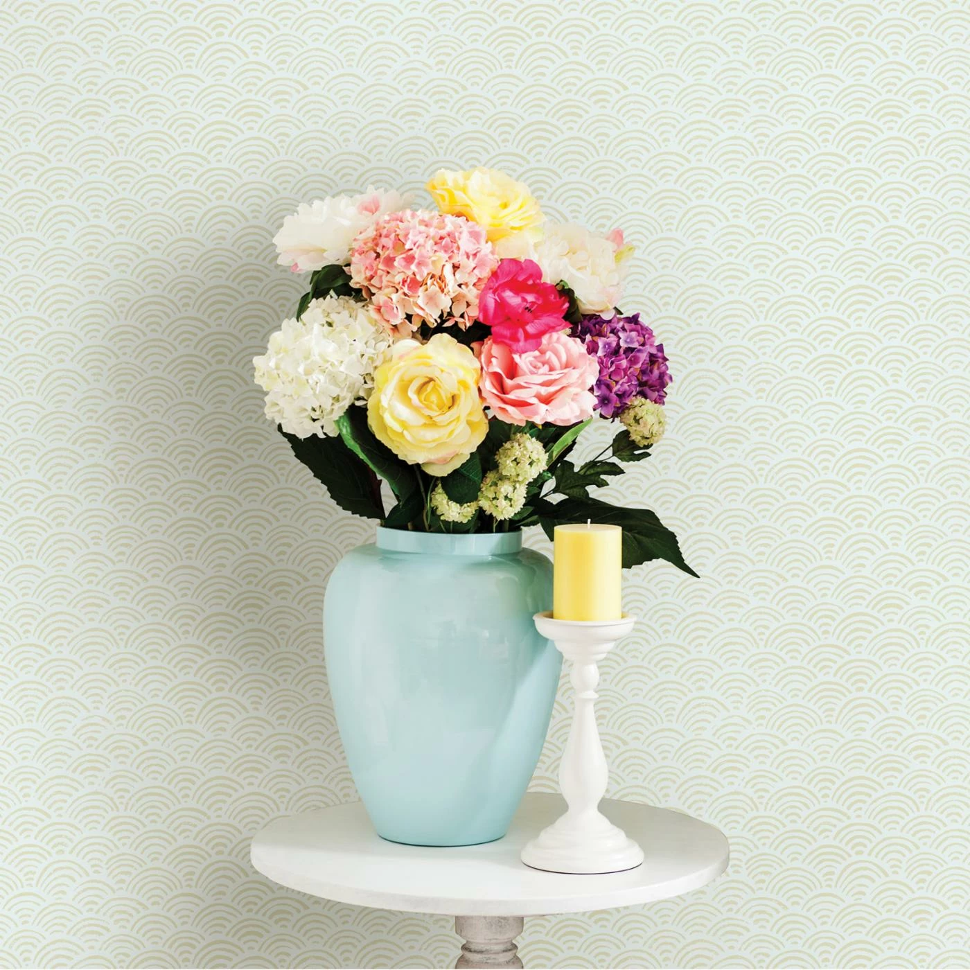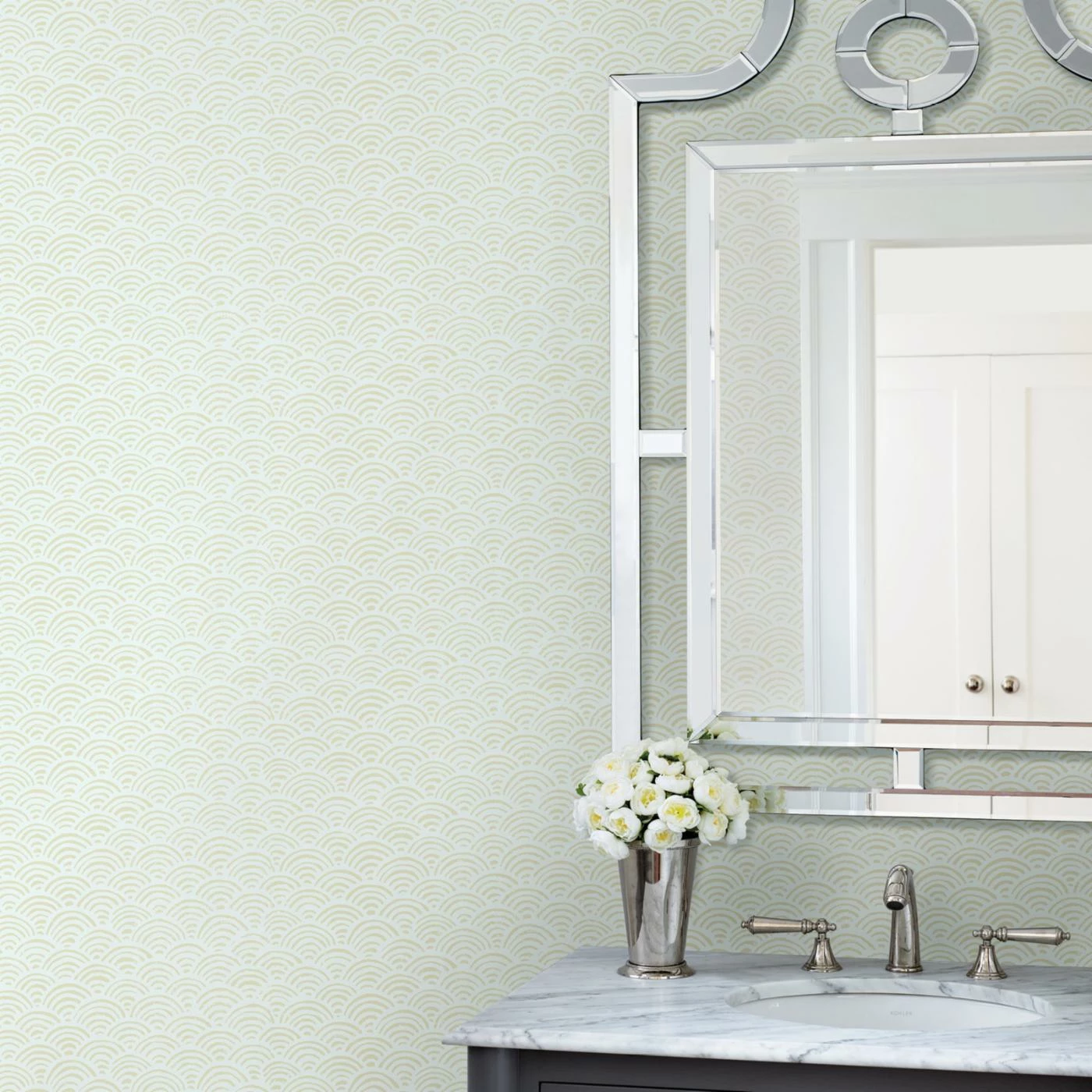 Add a sharp, chic complement to your home with the Brewster Essentials Sandur Waves Wallpaper. This wallpaper is rendered from thick non-woven paper thatβs conveniently washable. The pattern features radiant waves in a scalloped array with your choice of available color option. The back is non-pasted, allowing you to use your choice of adhesive.