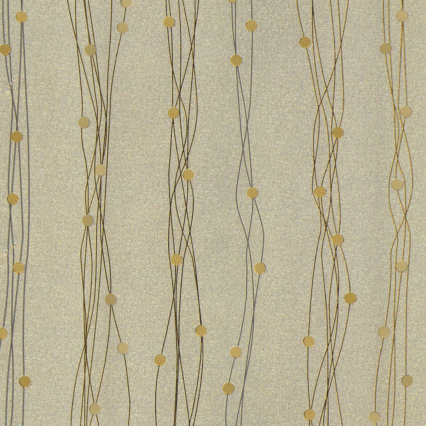 The Brewster Gregory Geometric Stripe Wallpaper features a mixture of metallics that come together in striking fashion. This ultra-modern wallpaper features slender, intertwining lines dotted with gold and bronze-toned circles. Add energy to any room with this fascinating wallpaper that arrives pre-pasted for easy installation.