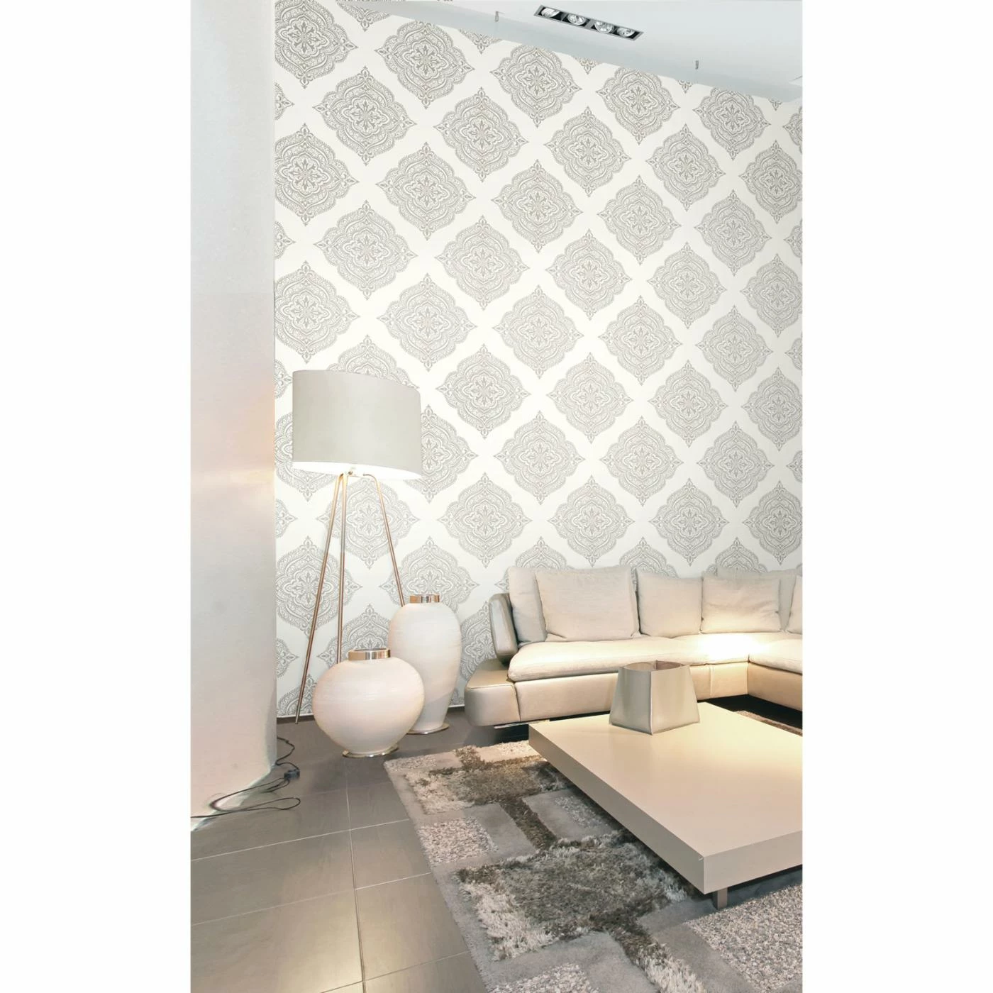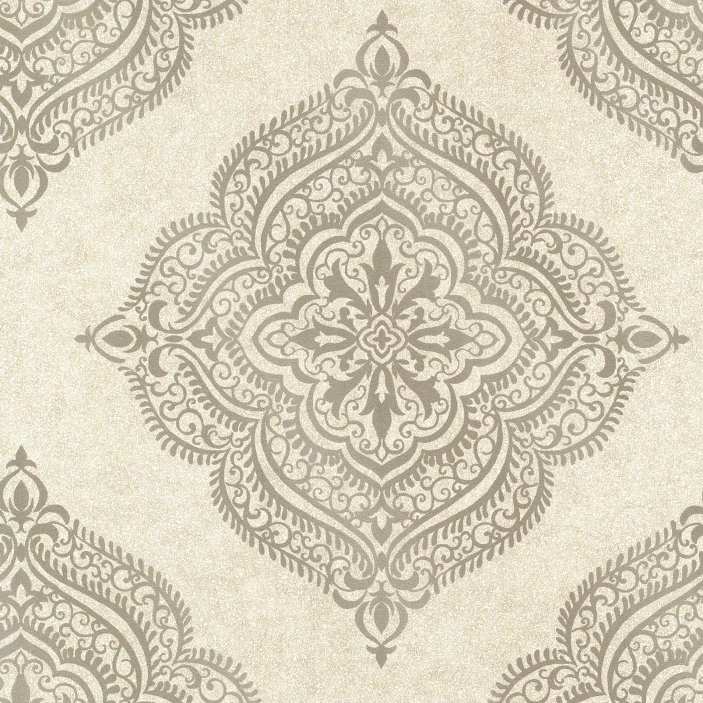 An exotic medallion in subtle glitter makes the Decorline Capella Medallion Wallpaper a study in sophisticated glamour. This nonwoven, unpasted wallpaper is washable, strippable, and covers approximately 56 square feet.