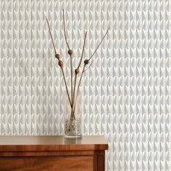 Fool the eye with the Eco Wallpaper Padma Geometric Texture Wallpaper. This decorative optical illusion on unpasted wallpaper seems to change before your eyes as you move toward it. The pattern shifts from an abstract geometric pattern to a repeated leaf motif. Made of non-woven materials, the paper is washable and strippable.