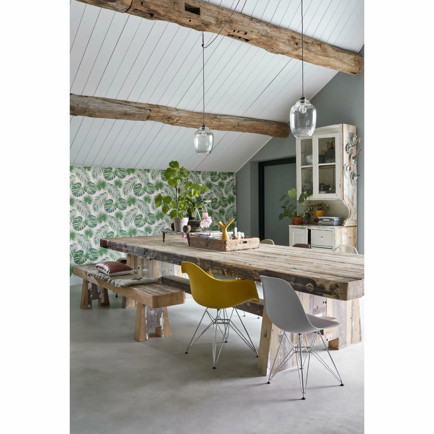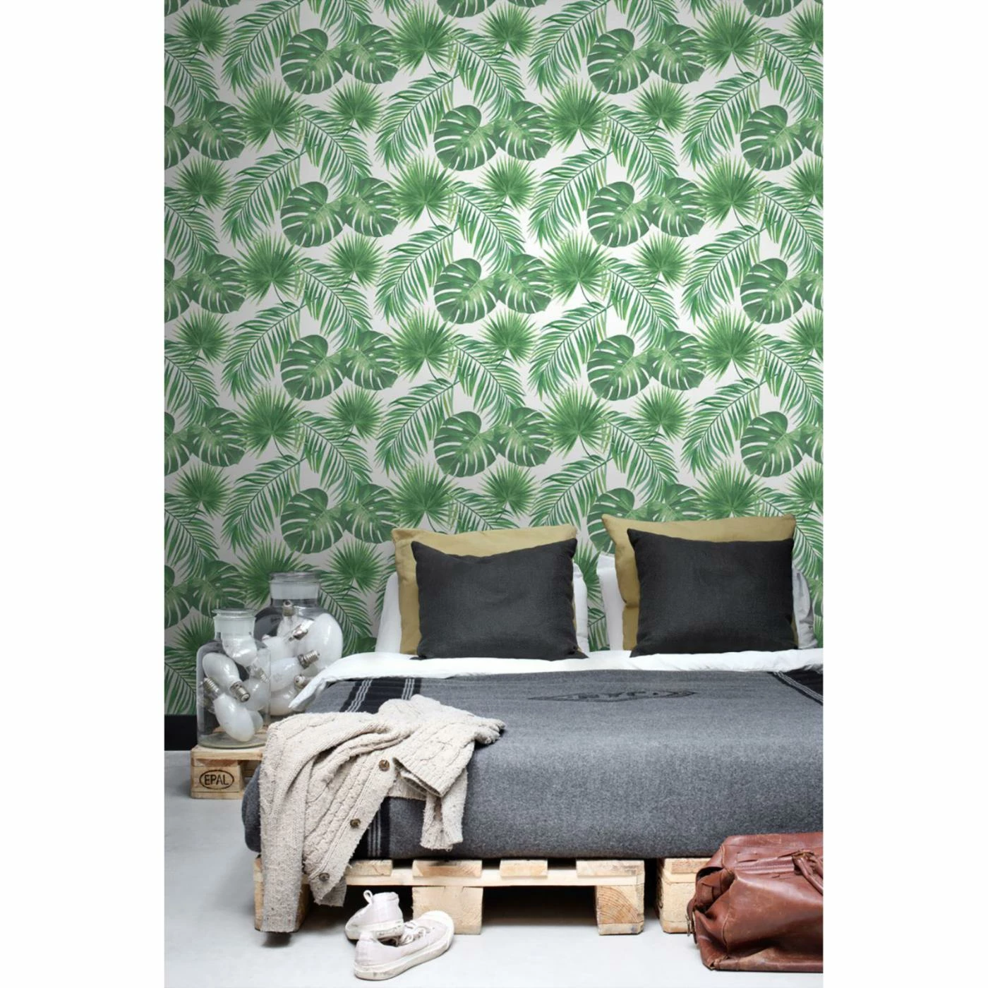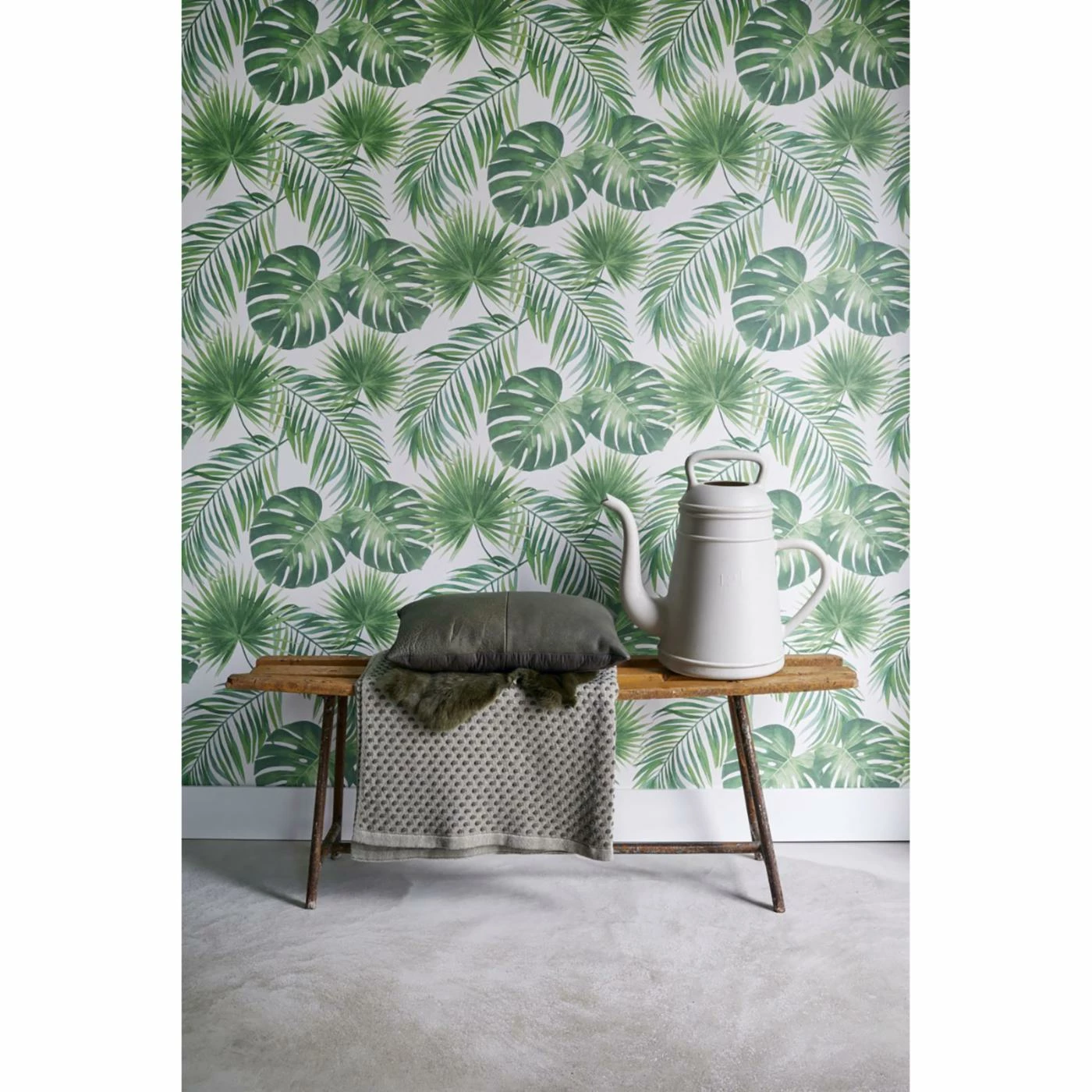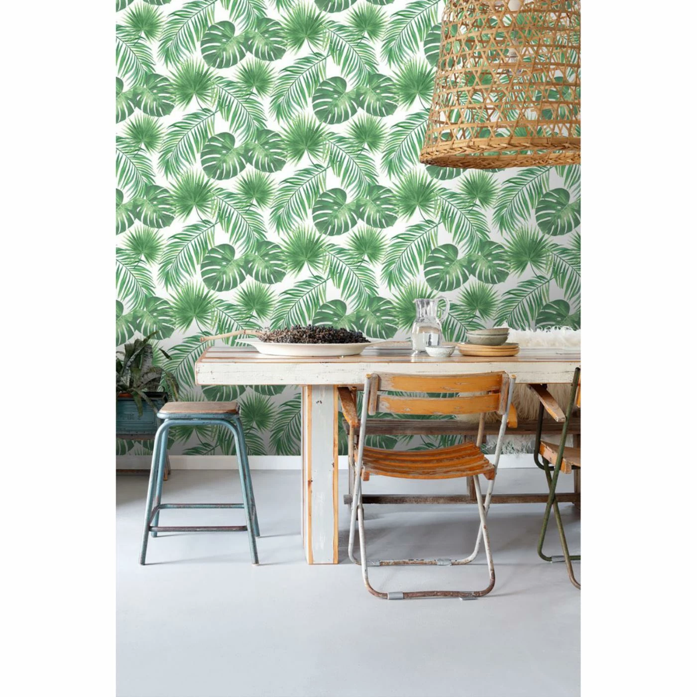 Turn any area of your home into a tropical resort starting with the ESTA Home Design Department Patti Light Green Leaves Wallpaper. A watercolor-style green palm leaf pattern is rendered on the white background. The paper is made from non-woven materials for durability and is washable. A non-pasted backing lets you control the adhesive used to apply the paper to your walls.