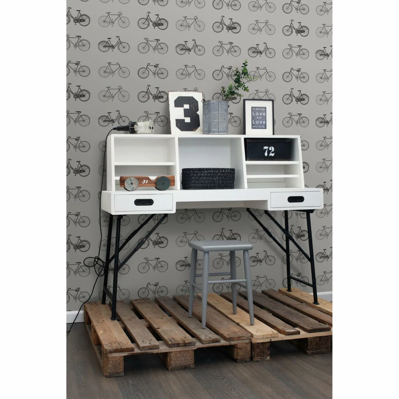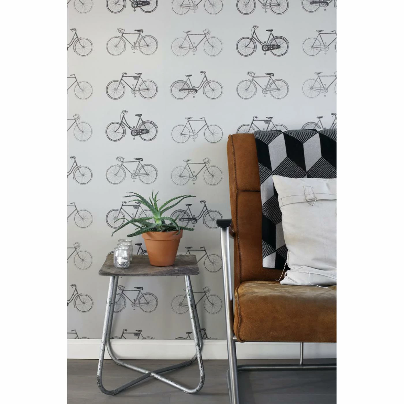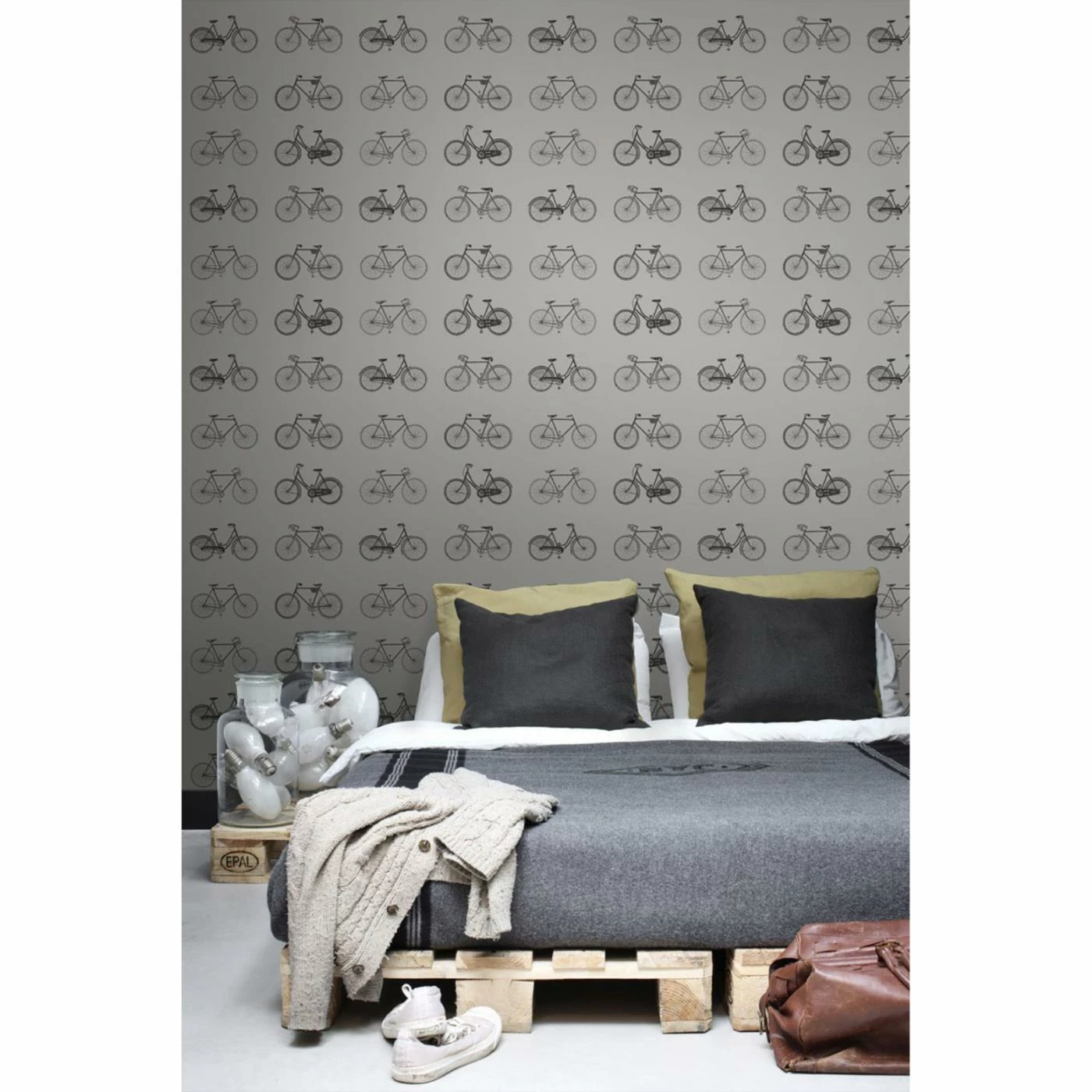 Bring a fun touch to any wall with the ESTA Home Design Department Turnblad Bicycle Wallpaper. This gray wall paper has detailed images of bicycles. Add to your home for a unique touch.