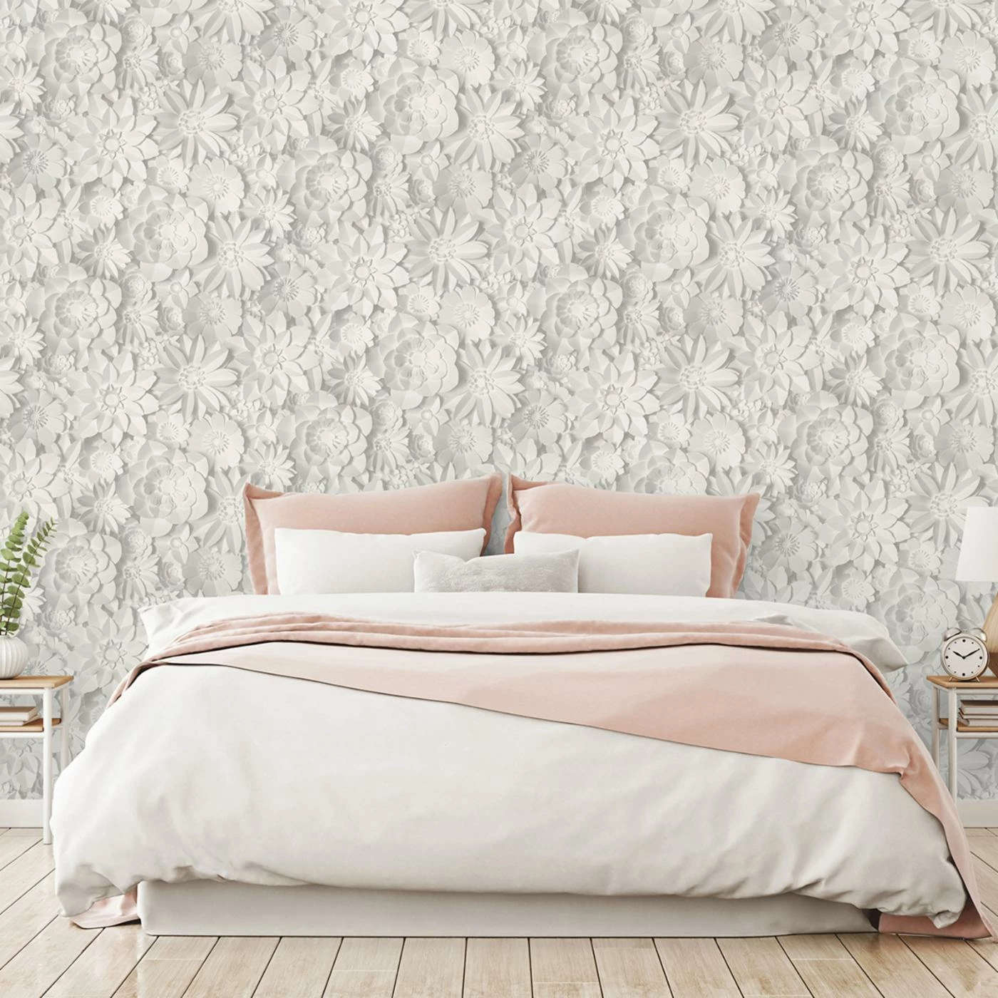 Introduce some floral warmth to any area of your home with the Fine Decor Medley Dacre White Floral Wallpaper. Made from non-woven materials, the wallpaper is washable and durable. Its non-pasted backing lets you choose the adhesive the works best for your needs. A three-dimensional floral pattern adorns the paper in white and gray.
