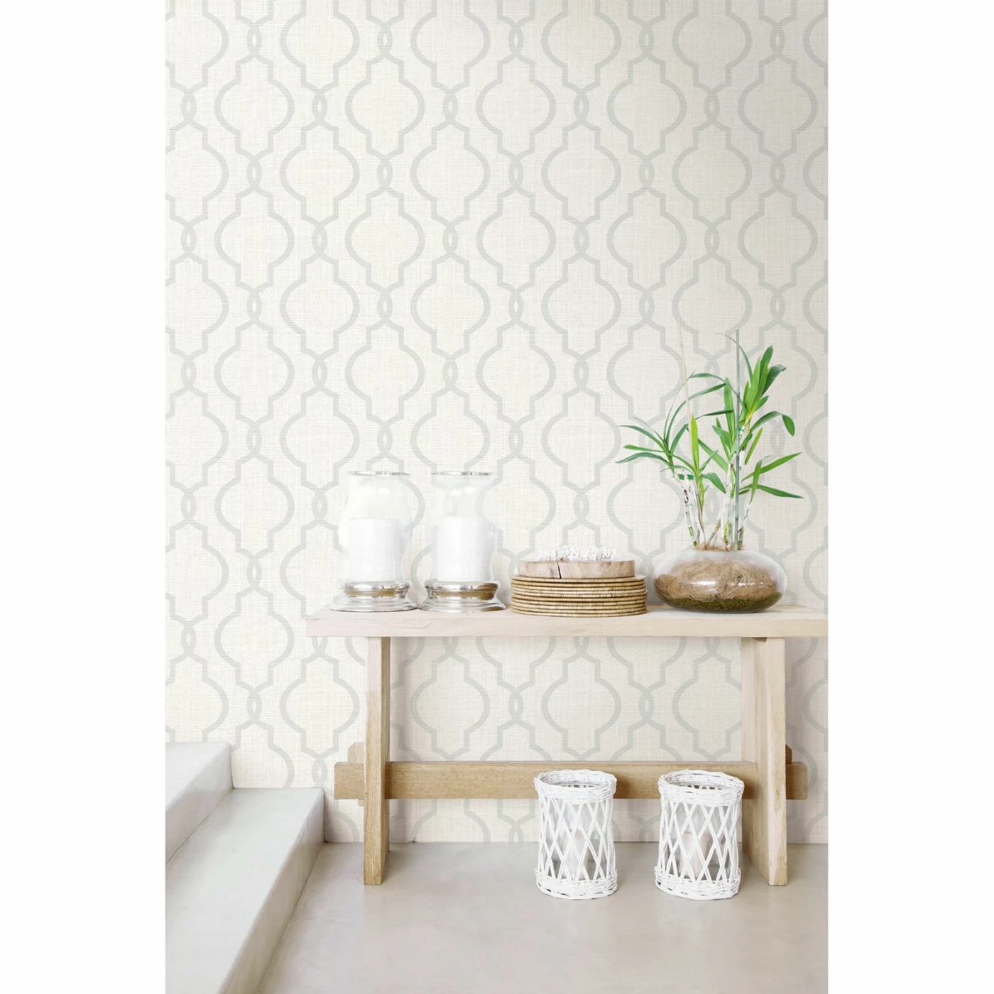 Instantly impart a stylish upgrade to any space with the Kenneth James Geometric Jute Quatrefoil Wallpaper. This versatile wallpaper features an understated quatrefoil print on a faux weave background with pearlescent flecks for a subtle sheen. Acrylic coated, it cleans up easily and strips away when it’s time to remove. Select from available colors to create a look that works for your room.