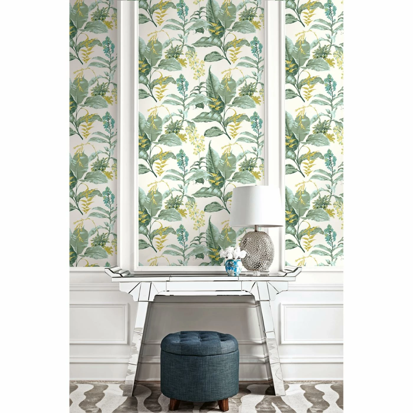 Beautifully detailed, the Kenneth James Maui Botanical Wallpaper brightens your room with a tasteful print of island foliage. This unpasted wallpaper is a charming choice for a feature wall and the acrylic coating makes it a breeze to keep clean. It comes in your choice of available color.