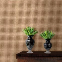 The neutral wheat color of the Kenneth James Ryotan Wheat Paper Weave Wallpaper is made distinctive by its basket weave of grass and jute strands. This naturally textural wallpaper is made of unpasted grasscloth. It’s washable with a damp cloth and simply peels to remove.