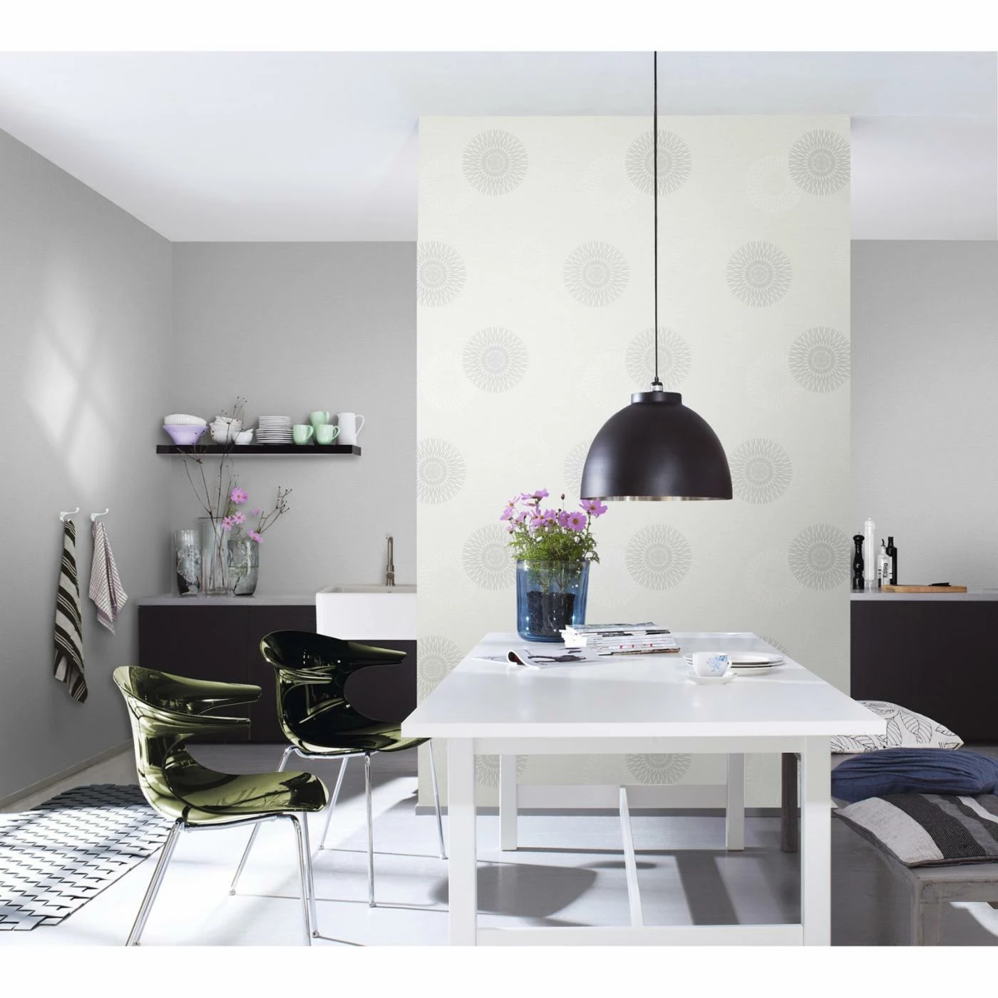 Introduce an energetic pattern with neutral tones to any area of your home with the Rasch Eliel Medallion Wallpaper. The modern medallion patterns come rendered in your choice of available color option on thick, non-woven paper. The paper is washable and has a non-pasted backing, letting you use whatever adhesive you choose.