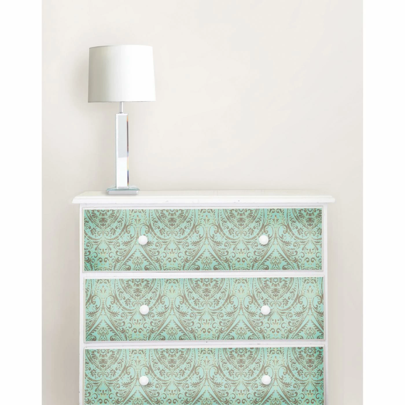 The Brewster Home Nomad Damask Peel and Stick Wallpaper gives your walls an easily updated, elegant look with a beautiful damask print in gray atop a lovely turquoise colored background. This gorgeous peel and stick wallpaper will enliven the look of your favorite room and applies easily thanks to its sticky backing that wonβt damage your paint.