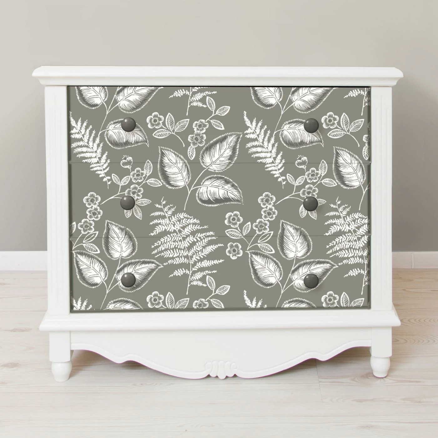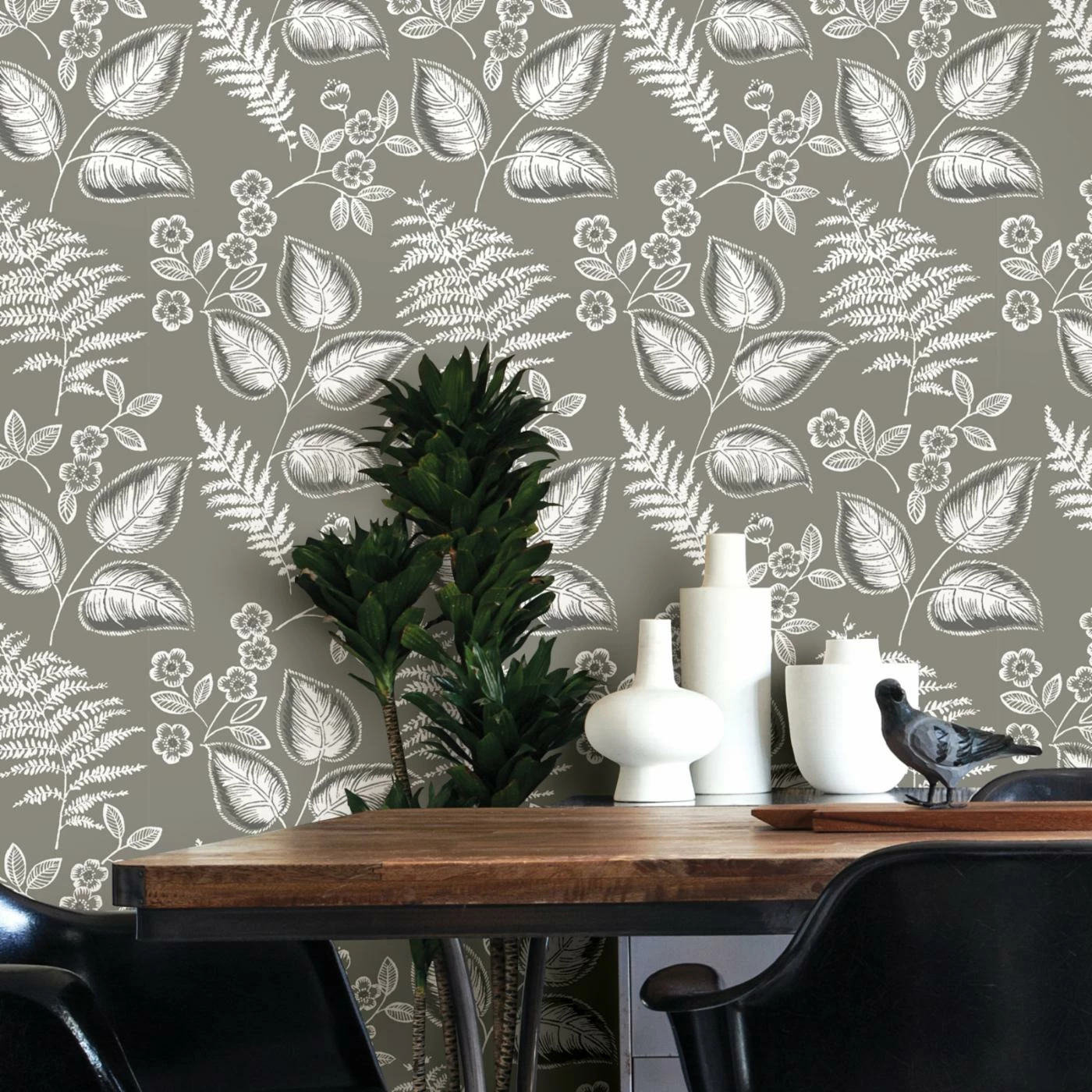 The detailed, nature-inspired pattern of the NuWallpaper Gray Foliage Peel and Stick Wallpaper instantly makes any simple accent furniture or empty wall more interesting. This peel and stick wallpaper has a neutral palette of gray and white to match any décor.