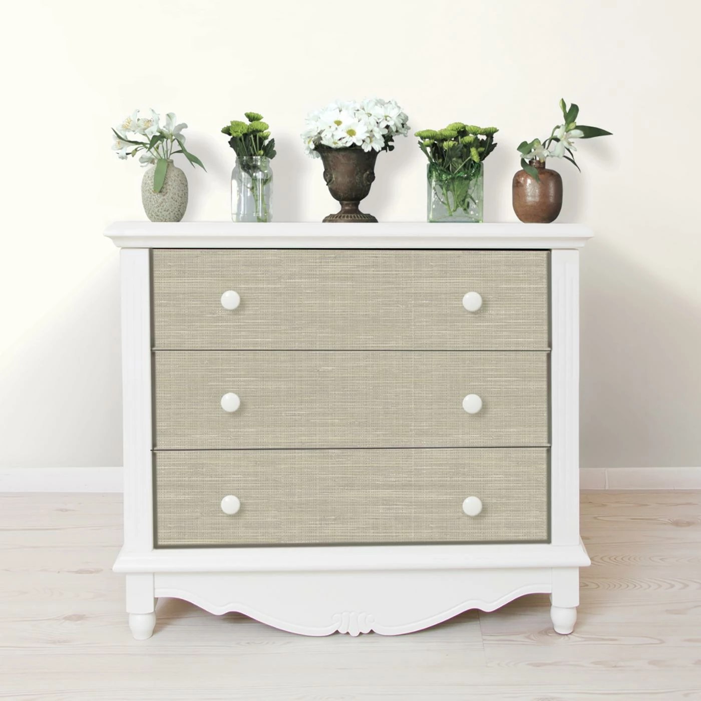 Soften a bright white dresser or update an accent wall with the organic woven texture of the NuWallpaper Wheat Grasscloth Peel and Stick Wallpaper. The easy-to-install wallpaper has a grasscloth look in a neutral wheat tone.