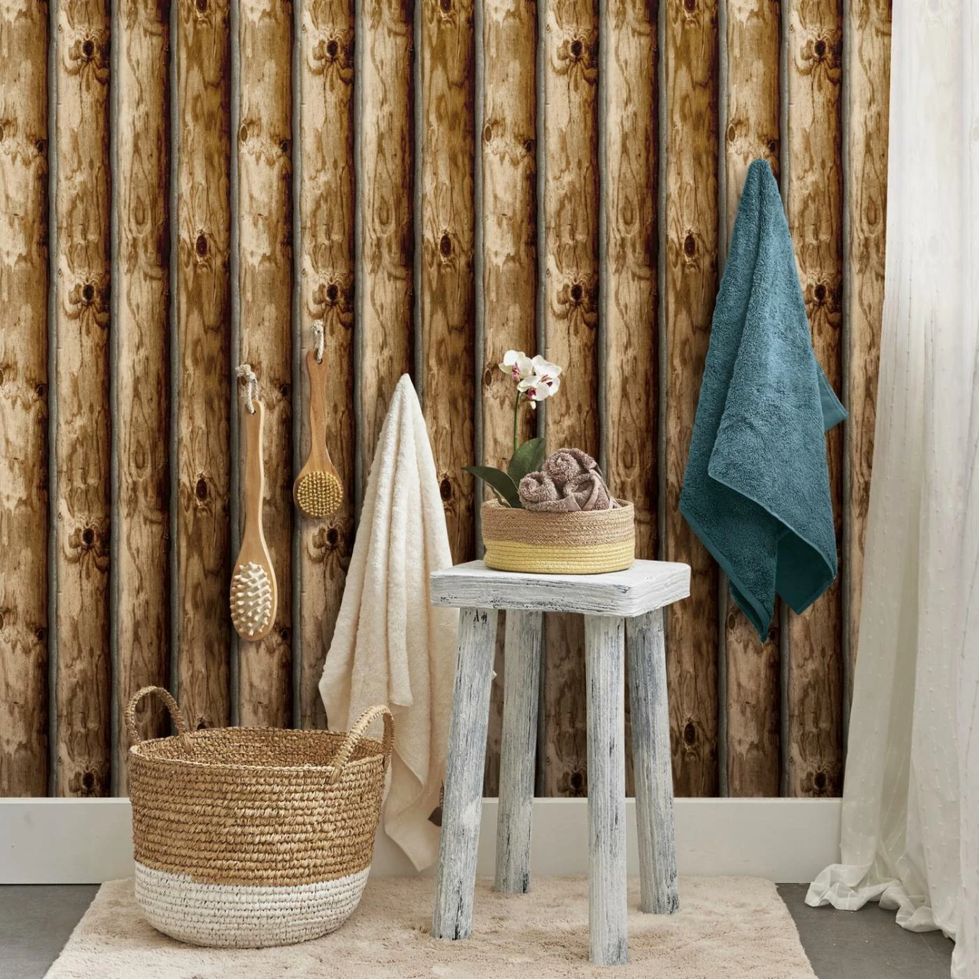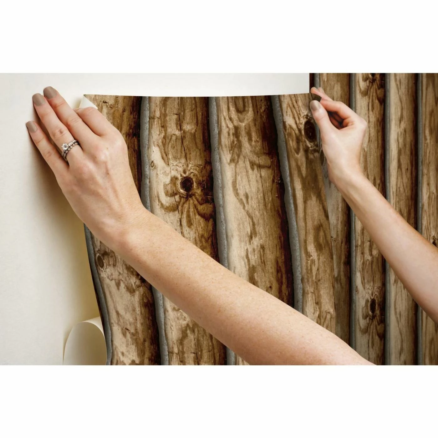 Offer a rustic, lodge-style look to your basement, living room, or bedroom accent wall with the RoomMates Cabin Logs Peel and Stick Wallpaper. This paper has a log-plank design with realistic wood-grain and a rich brown tone. The paper is made from vinyl with a peel-away backing for quick and easy application. Peel away the paper when you’re tired of the look to return to normal, leaving no residue behind.