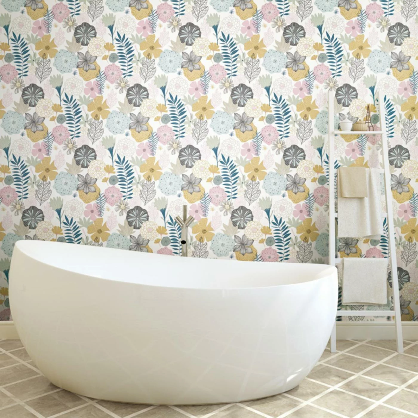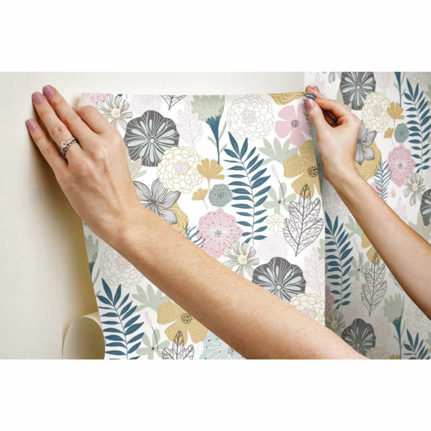Instantly update any space with the RoomMates Perennial Blooms Peel and Stick Wallpaper. This vinyl wallpaper features a repeating flower and leaf pattern in your choice of available colors. It will easily apply to any smooth surface, from an accent wall to a desk. If you want to reposition or remove the wallpaper after applying it, this wallpaper won’t leave any sticky residue behind. If it gets a little dusty over time, just wipe with the surface with a damp cloth as needed. When applying this wallpaper, just cut the needed size from the rolled sheet, remove the backing, and stick it to any clean, smooth surface.