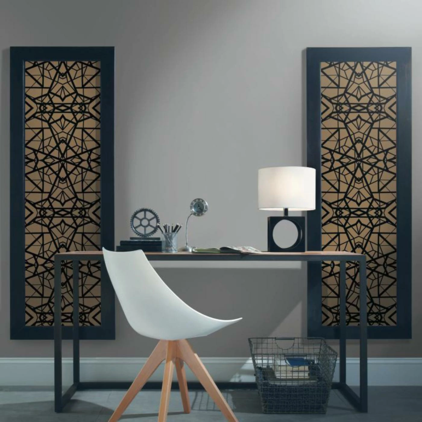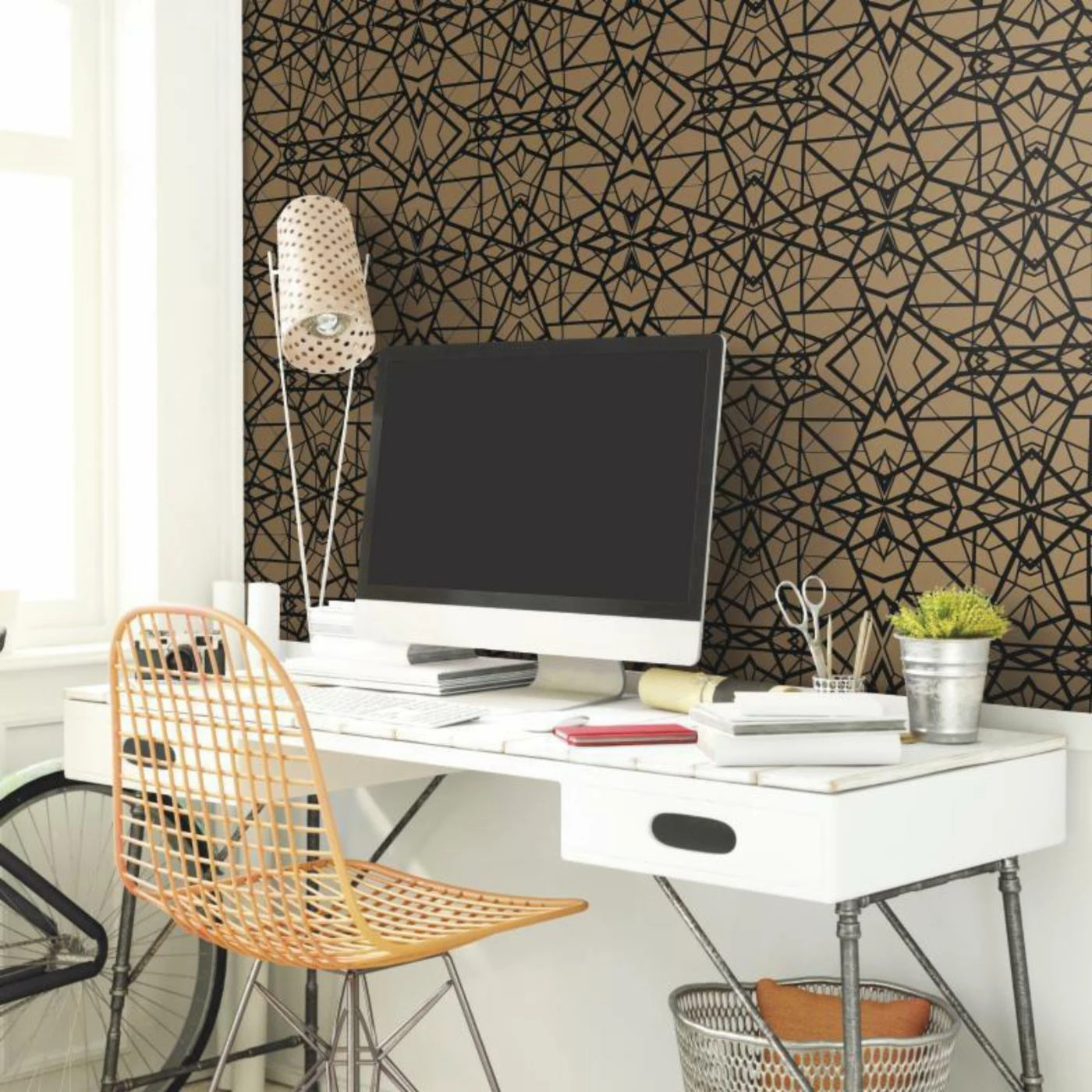 Overlapping geometric patterns create a modern two-tone look for your wall with the RoomMates Shatter Geometric Peel and Stick Wallpaper. Installing easily with sturdy adhesive that won’t damage your walls, this durable vinyl wallpaper refreshes your décor in simple style.