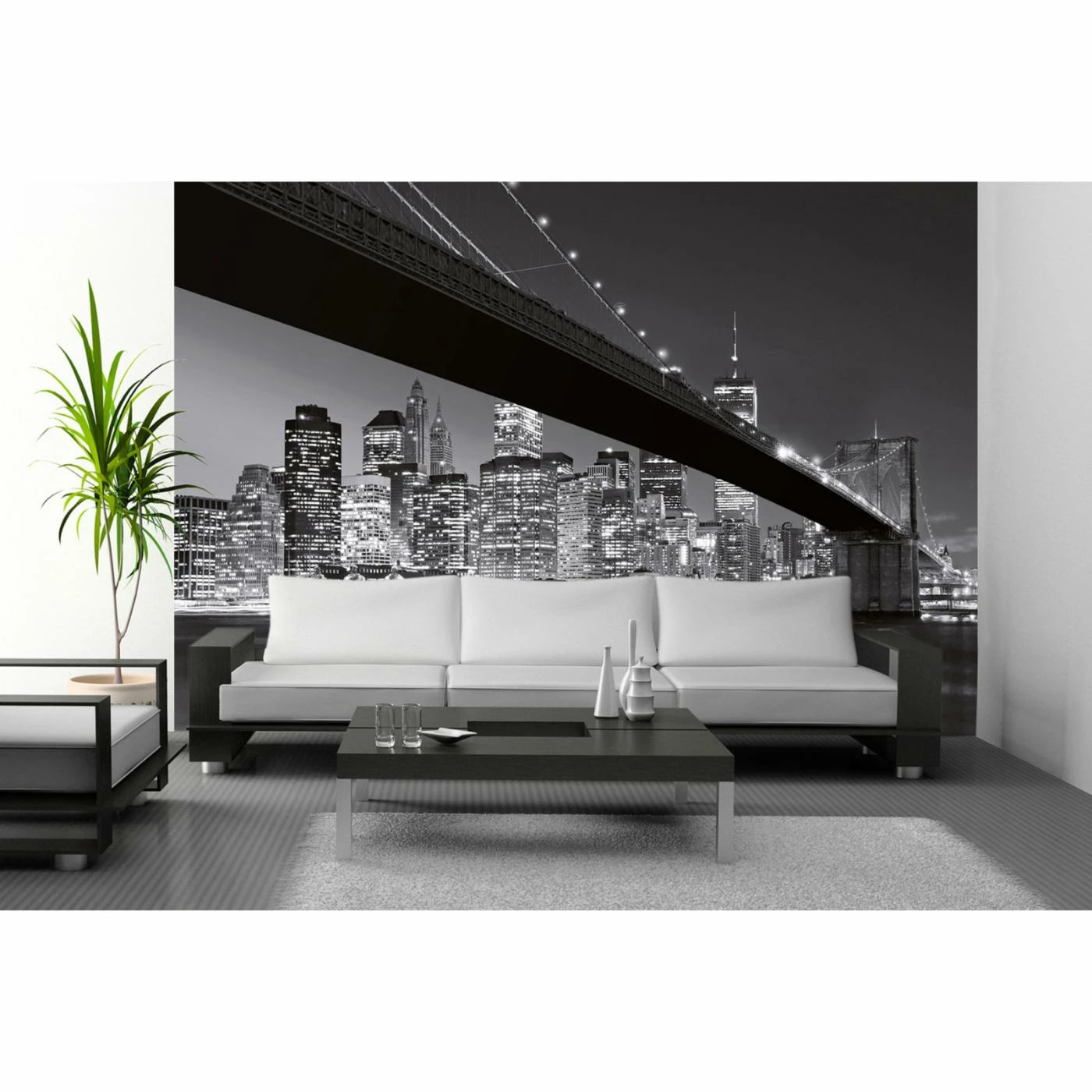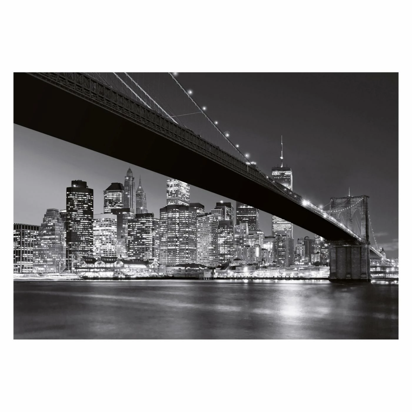 Glowing city lights have never been as stunning as they are on the Ideal Decor Brooklyn Bridge NY Wall Mural. This artful view of NYC from under the Brooklyn Bridge brings a vibrant energy to your room with this easily removable, eight-panel wall mural.