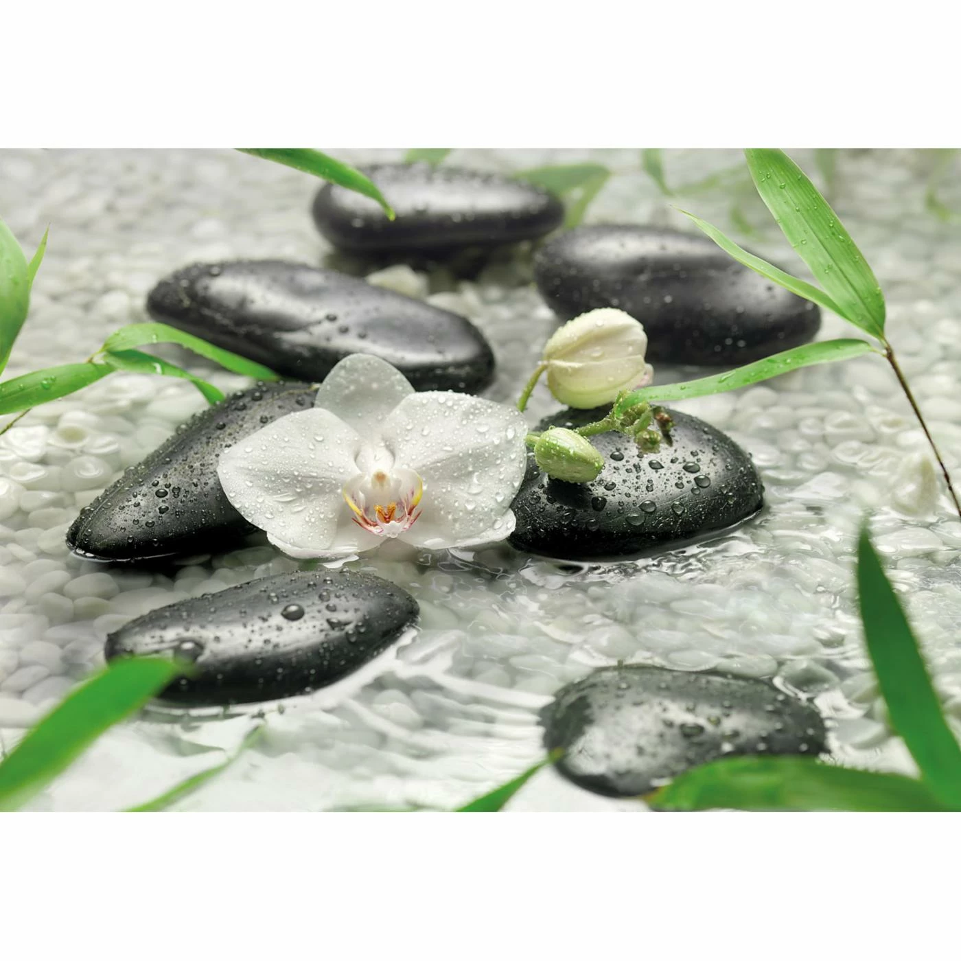 Bring the tranquil beauty of nature to your home with the Komar Pure Wall Mural. This photographic image showcases a close-up of water, smooth stones, and a simple flower. The exceptional detail brings the beauty of nature into any room.