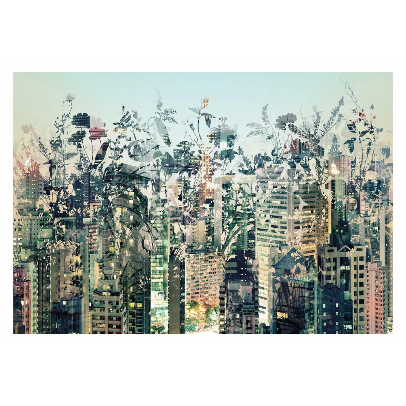 Add energy and texture to your wall while making a striking statement: the Komar Urban Jungle Wall Mural is a totally unique bit of eye candy for the modern home or apartment. Botanical silhouettes sprout from the skyline, portraying the city as a living, breathing ecosystem. You’ll love the contemporary feel and welcoming colors this mural brings to your space.