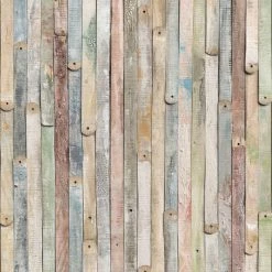 Create a distinctive feature wall with the Komar Vintage Wood Wall Mural. This vintage mural has a trompe loueil effect, an illusion that your wall is paneled in rustic wood. Chic distresses of green and blue add intrigue.